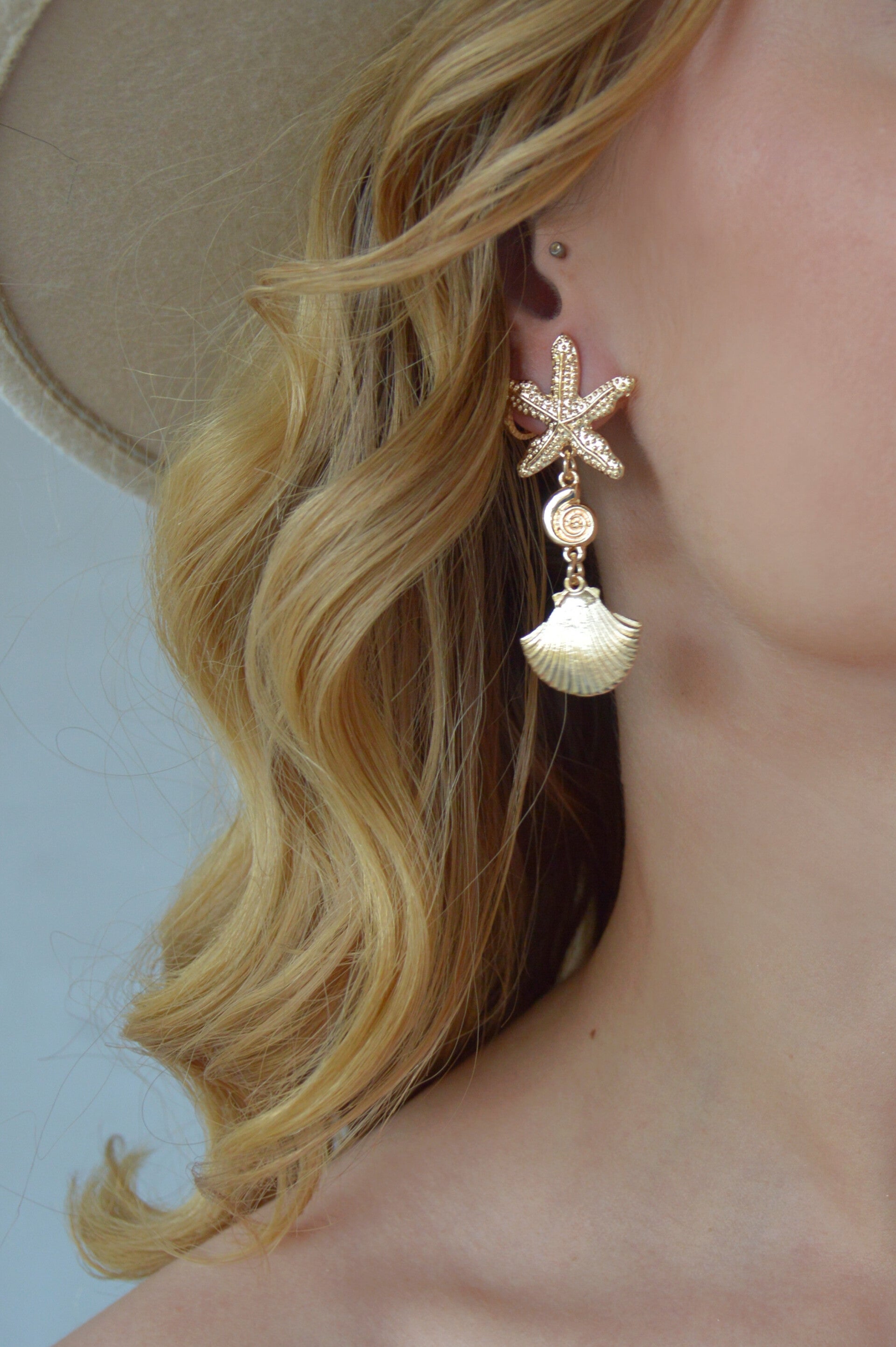 These light weight starfish/shell earrings with a golden color are just a perfect statement for your summer look!