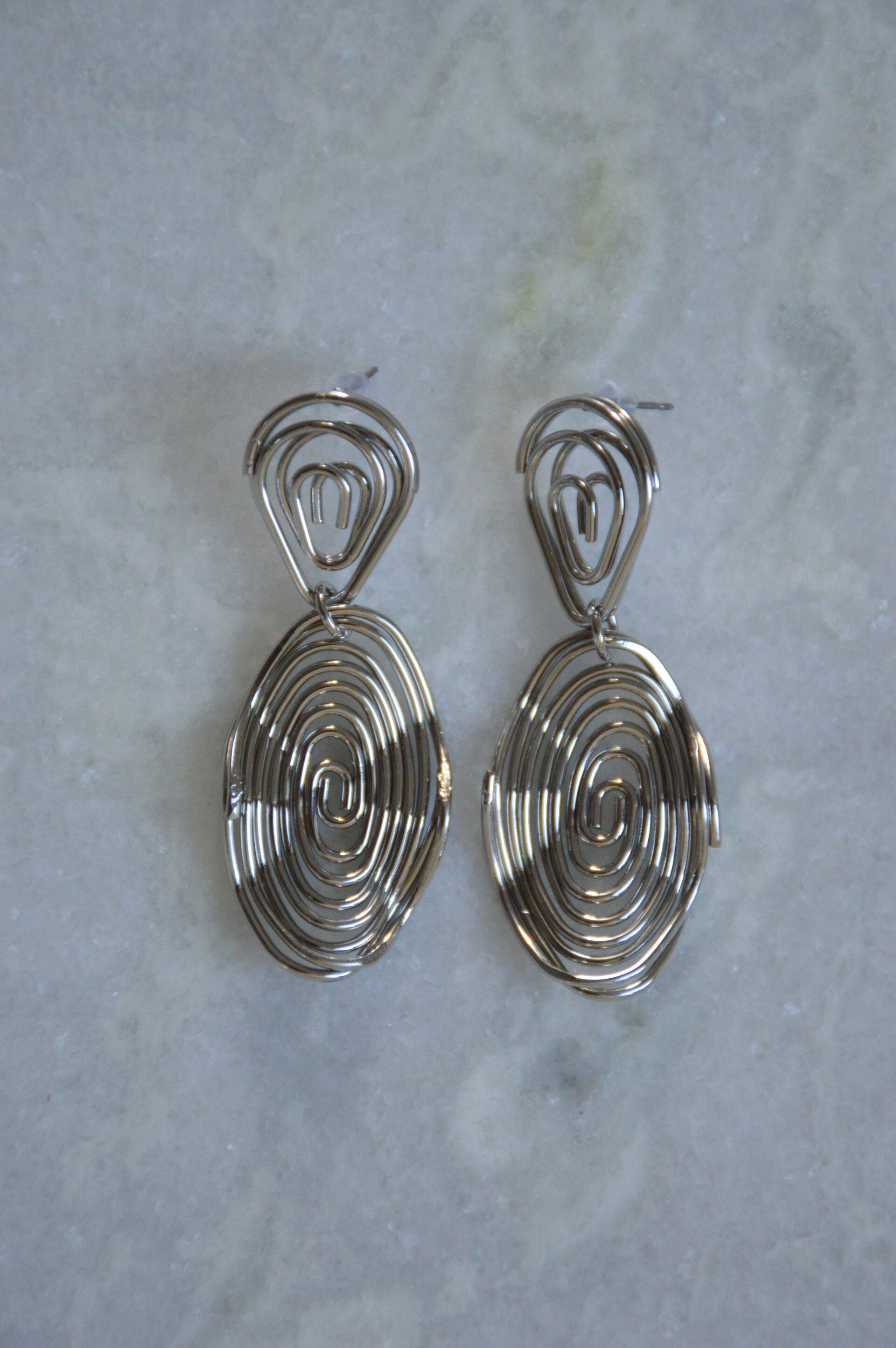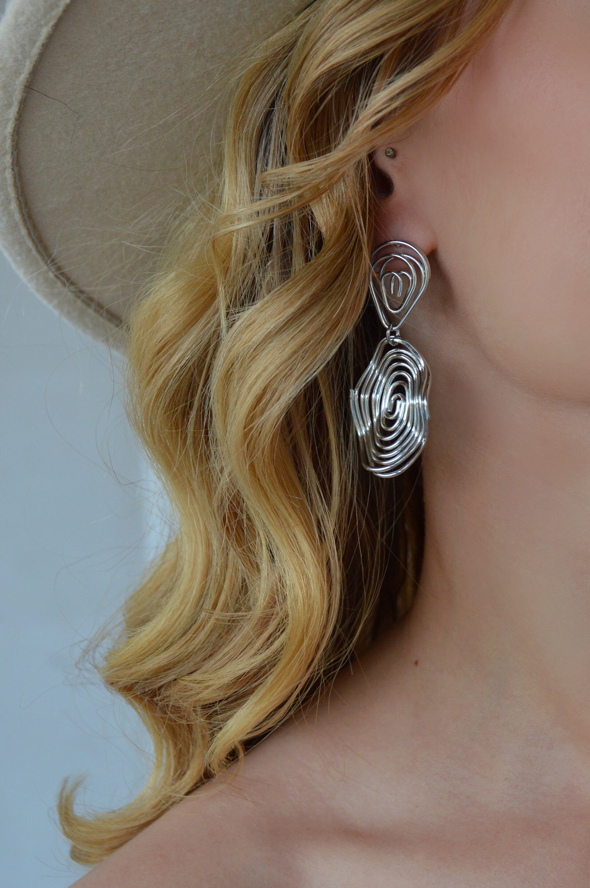 These eccentric silver colored earrings are a feast for the eye! Perfect to finish off your outfit