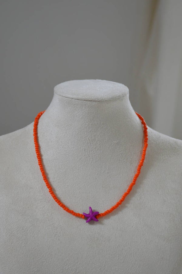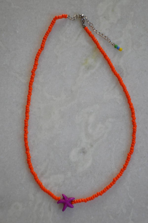 This orange/purple beads starfish necklace is just stunning! Perfect to layer with one of our other beads necklaces!
