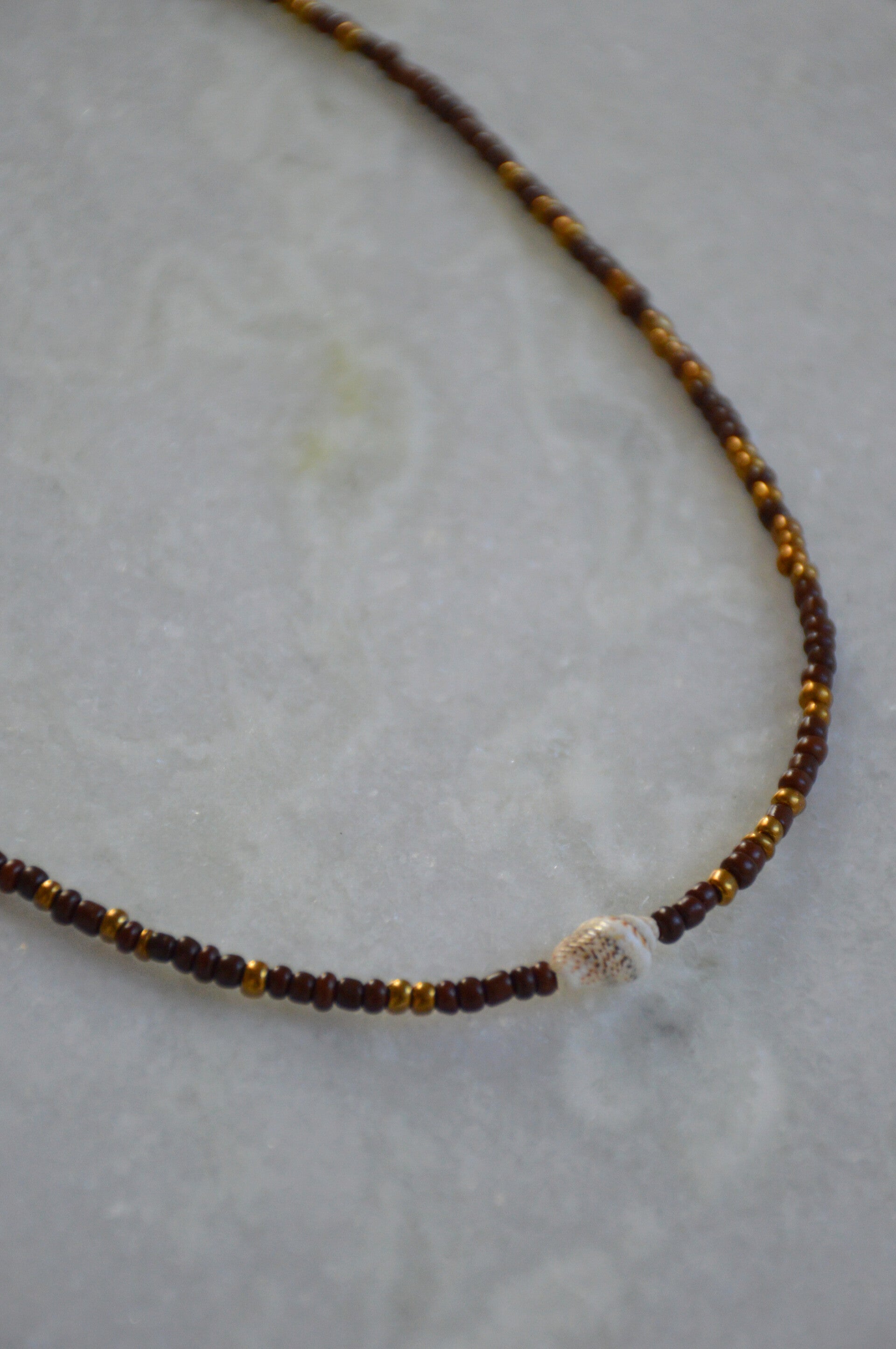 This brown / gold beads shell necklace is just stunning! Perfect to layer with one of our other beads necklaces!