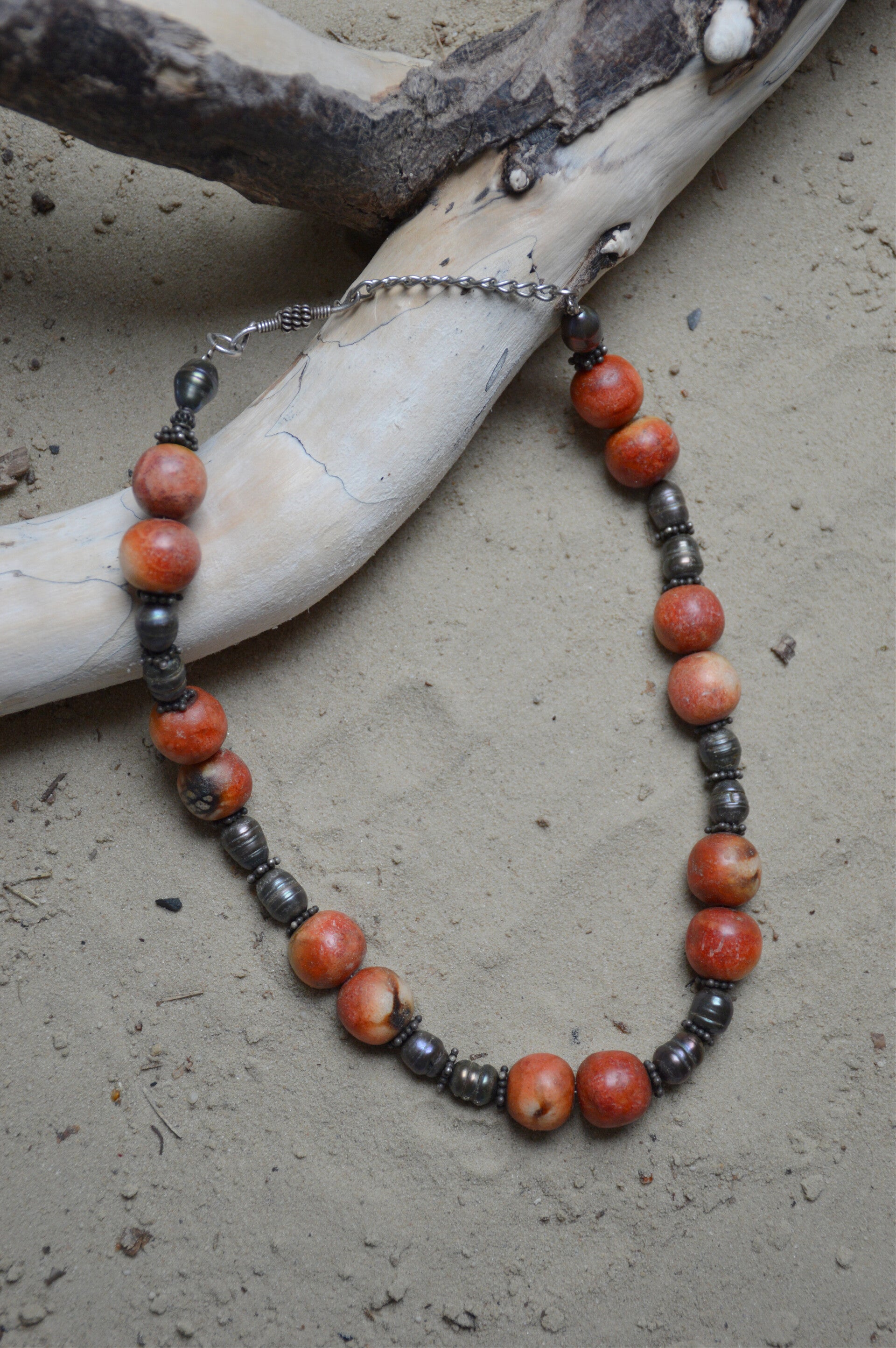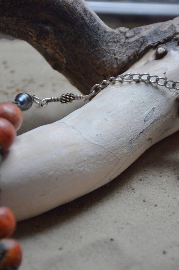 This necklace is the perfect combination of wood and shell!