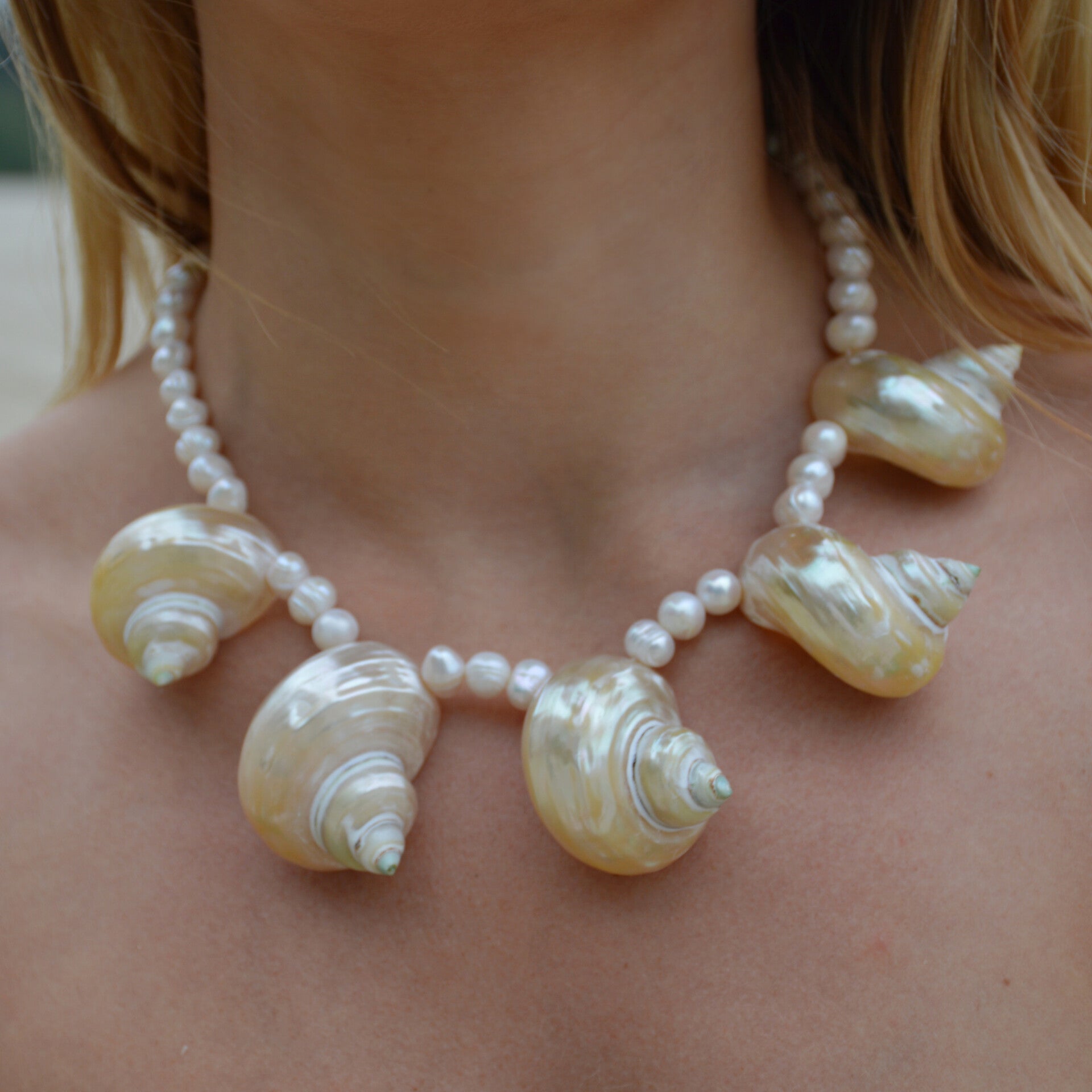 Statement conch and pearl necklace