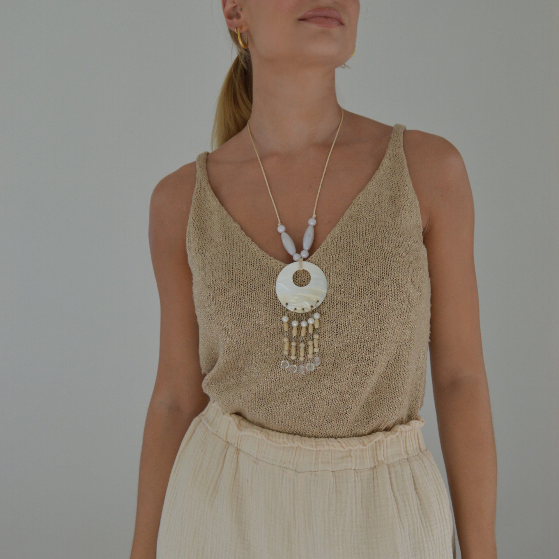 This beaded shell necklace is perfect to finish off your summer look!