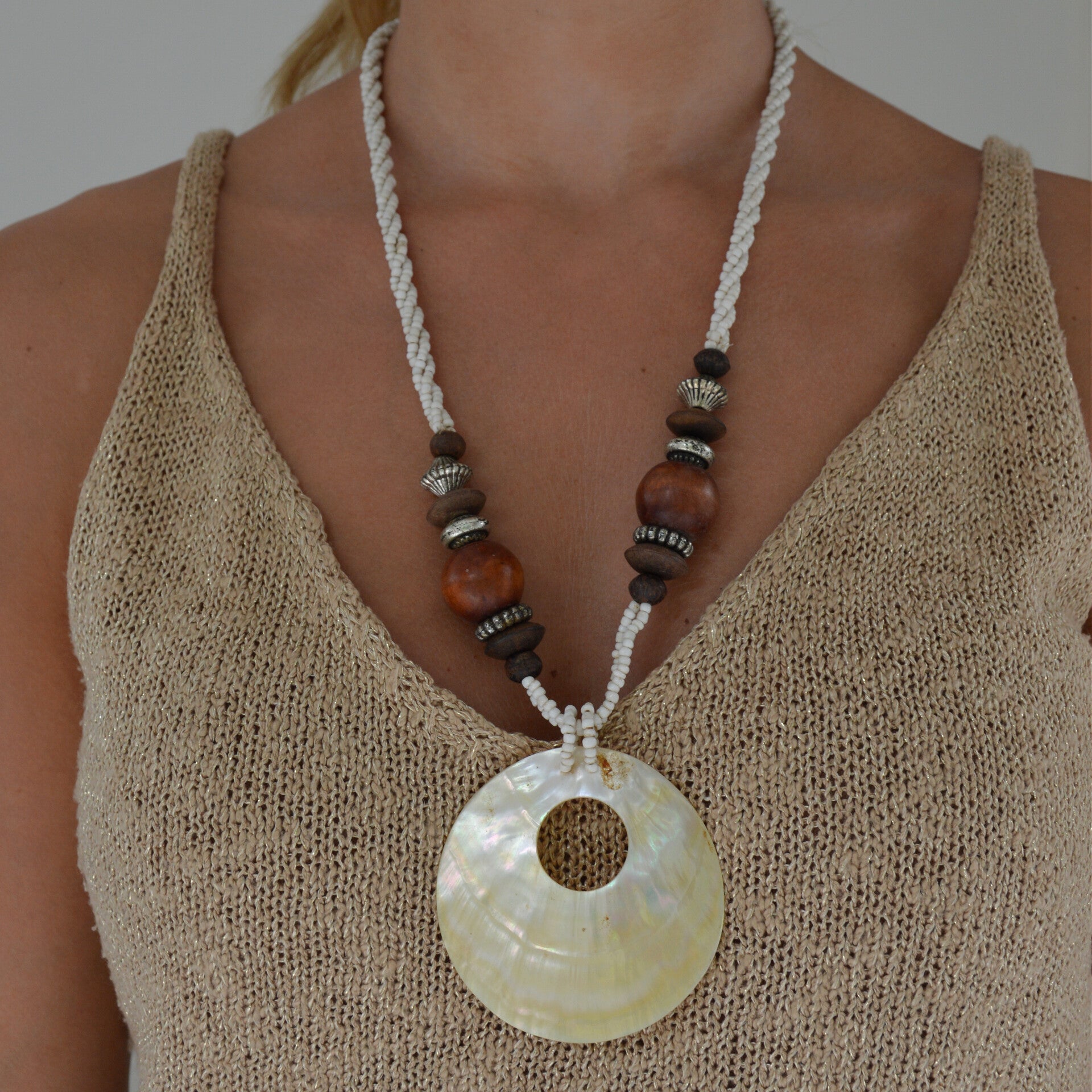 This beaded shell necklace is perfect to finish off your summer look!