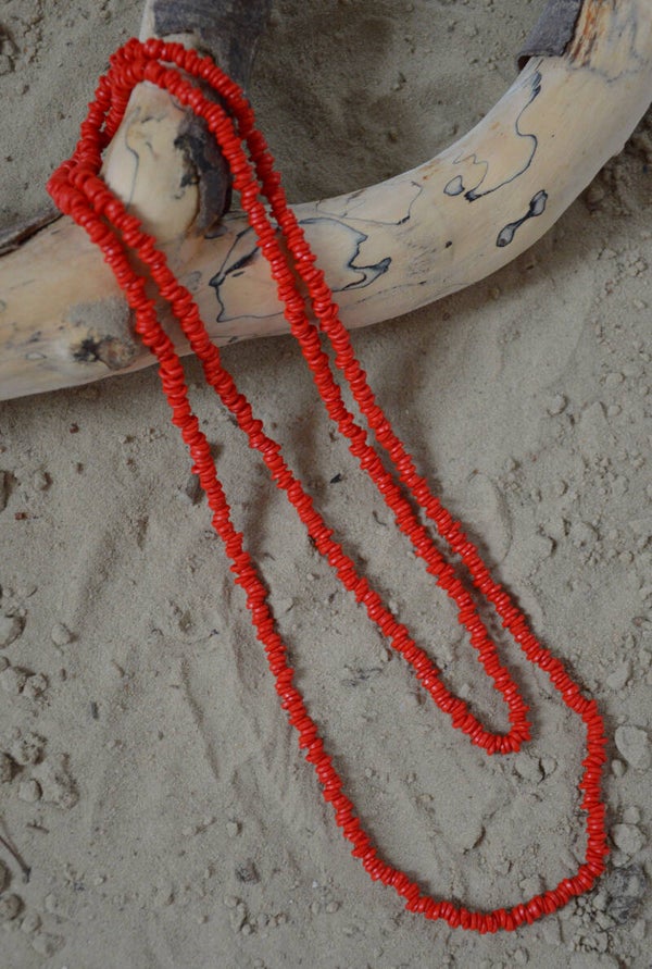 This necklace made out of small wooden beads has a coral look, which makes it perfect to finish up your summer outfit! This necklace is long, which means you can wear it long, or double it and wear it like it looks you are wearing two shorter necklaces.