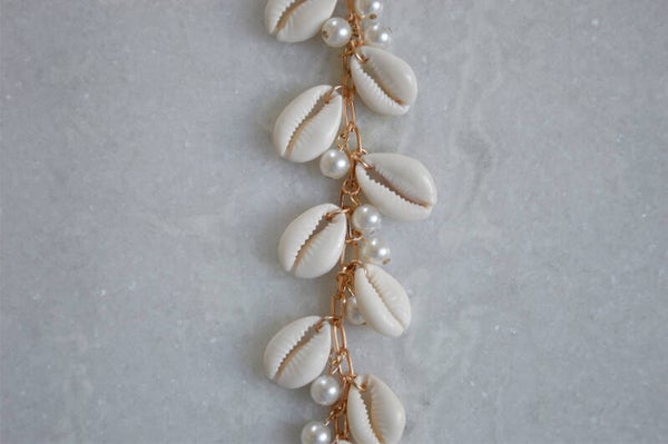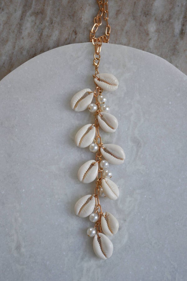 This gorgeous statement necklace with faux pearls and shells is a feast for the eye!